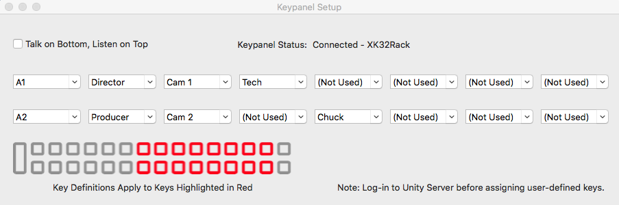 The development team at Unity has been working with different Unity Intercom interfaces and this rack mounted Key Panel (from X-Keys) has been created. The 6 Talk channel buttons are on the Top and Listen is on the bottom and can be swapped if needed, for example like an RTS key panel.